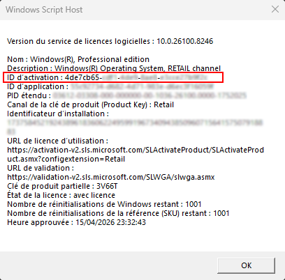 Afficher la clé de produit de Windows (les 25 caractères alphanumériques)