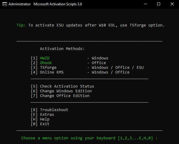 - L'option offline KMS38 (prolongement de la période d'activation jusqu'au 19/01/2038*) a été supprimée car devenue officiellement obsolète depuis les mises à jour Windows de novembre 2025.
