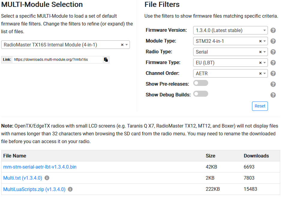 | Protocoles pour la version ELRS | ExpressLRS 2.4GHz